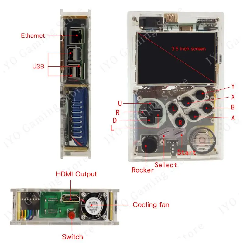 for sale Schermo da 3.5 Pollici Video Console di Gioco Up Pi Uscita Hdmi Raspberry Pi 3 B Recalbox Palmare R